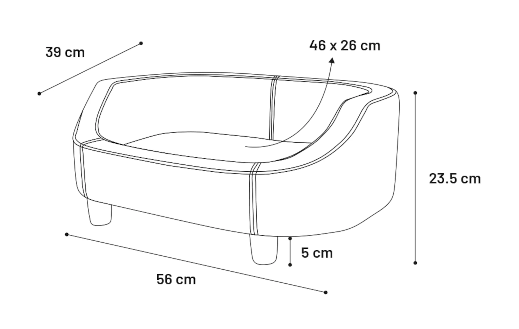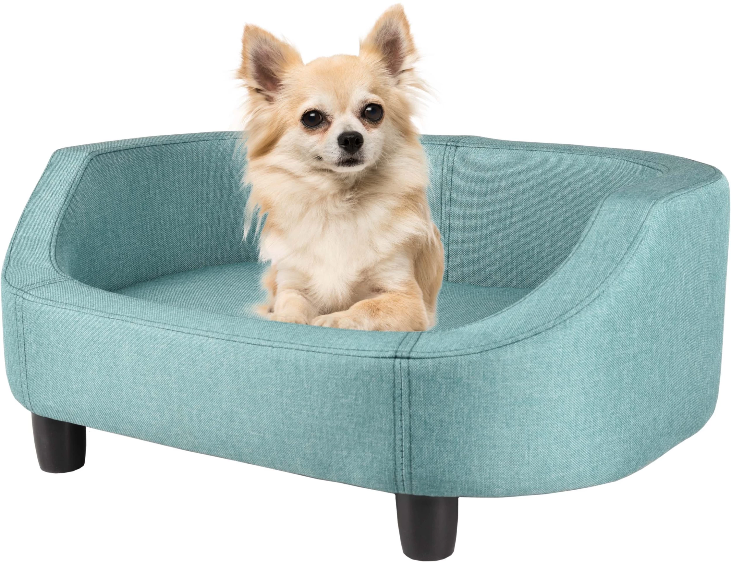Ce magnifique canapé est idéal pour votre ami à quatre pattes. Il est fabriqué avec des matériaux de haute qualité. Le tissu utilisé, de couleur verte, présente des surpiqûres décoratives qui lui donnent un aspect élégant en combinaison avec des pieds de couleur foncée.