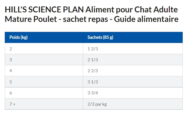 Dans les sachets fraicheurs Hill’s Mature, sel et phosphore sont savamment dosés. La formule est conçue pour assurer un juste équilibre de tous les éléments nutritifs afin de vous permettre de garder votre compagnon le plus longtemps possible.