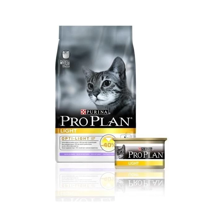 PROPLAN Adult Light Chat ne contient que 8% de matières grasses. Avec de la viande maigre, PRO PLAN LIGHT est très savoureux et hautement digestible. Il permet de maintenir une masse corporelle idéale pendant le programme de perte de poids. Sa formule permet de soutenir le système immunitaire souvent perturbé chez le chat ayant tendance à l’embonpoint.