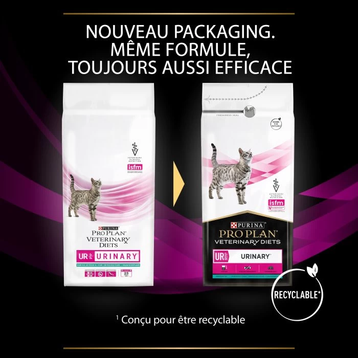 Les croquettes PURINA Veterinary Diet UR ont une teneur réduite en phosphore et magnésium pour les chats souffrant de problèmes urinaires du type Syndrôme Urinaire Félin et calculs de Struvites et d’Oxalates.