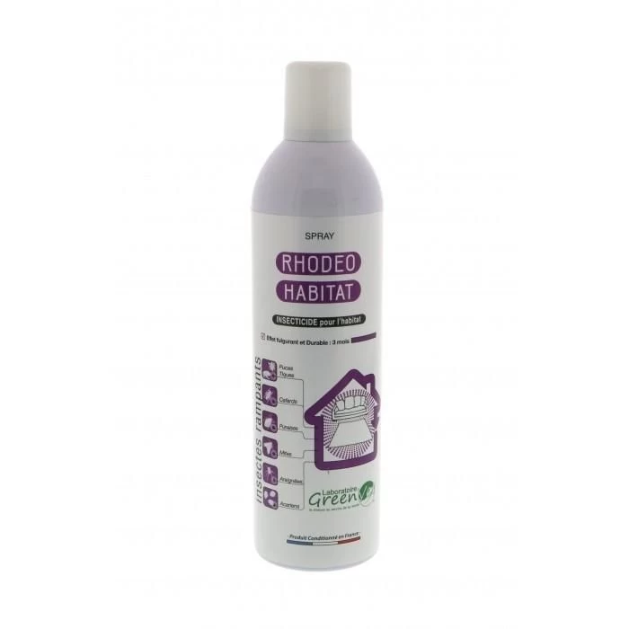 Le spray Rhodeo Habitat est un insecticide pour l’habitat, il permet de traiter tout ce qui est en contact avec l’animal : couchages, tapis, canapés, coussins, paniers, niche, moquette, parquets, voiture, etc…