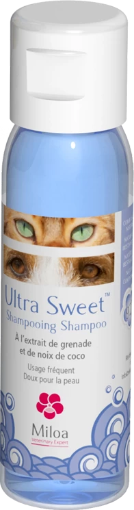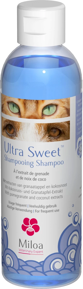 Ultra Sweet TM de Miloa nettoie en douceur tous les types de pelage y compris les plus sensibles grâce à ses bases lavantes douces.